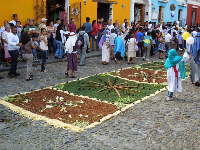 These fragile works of art are destroyed as the processions shuffle over them but are re-created each morning for another day of parades.